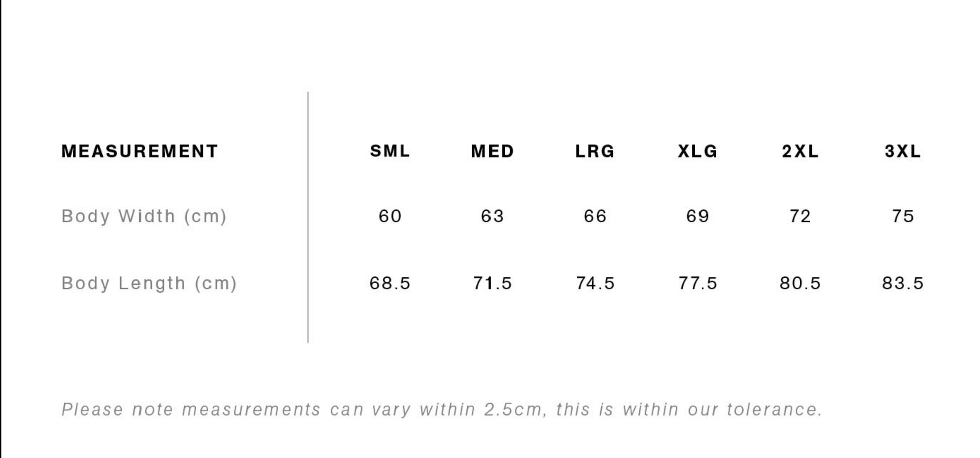 Neck ribbing, oversized fit with dropped shoulders, shoulder to shoulder tape, double needle hems, preshrunk to minimise shrinkage